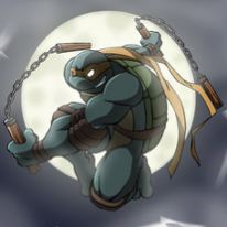 Read more about Michelangelo (TMNT) at: Wikipedia Official Site: Mirage Studios Michelangelo (Mike or Mikey) is a fictional character, one of the four Teenage Mutant Ninja Turtles (TMNT). His mask is typically portrayed as orange outside of the comic series and his weapons are two nunchaku, though he has also been portrayed using other weapons, such as a grappling hook, tonfa, a three section staff (in some action figures), and (in several works of fan art) a kusari-gama. More fun-loving than his brothers, Michelangelo was given a much bigger role in the 1987 cartoon series, directed at a younger audience, than in the more serious original comic books. He came to epitomize the late 1980s and early 1990s popular culture incarnation of the TMNT, coining most of their catch phrase; hence, he is possibly the most famous Turtle. Because of his more carefree nature, he is often viewed as the youngest of the Ninja Turtles, although in fact the Ninja Turtles are all roughly the same age. Like all of the brothers, he is named after a famous Renaissance artist; in this case, he is the namesake of Michelangelo Buonarroti , who was the painter of the ceiling of the Sistine Chapel. The spelling of the character's name varies from source to source, and he has been alternately shown as both Michelangelo and Michaelangelo. Because Kevin Eastman's original "ninja turtle" concept drawing (1983) portrayed an unnamed turtle with nunchaku strapped to its arms, some consider Michelangelo to be the first Ninja Turtle created. Michelangelo is consistently portrayed as the most light-hearted and friendly of the four Turtle brothers. Upbeat and good-natured, 'Mikey' (an affectionate nickname frequently used by his brothers) prefers to spend his time enjoying his life. While his brothers wrestle with the implications of their mutation and their place in the world, Michelangelo enjoys relaxing in front of the TV, skateboarding throughout the labyrinthine underground sewers that the Turtles have made their home, reading comic books, and eating lots of pizza, of which Michelangelo's favorite is either pepperoni or anchovy. Michelangelo's innocent and childlike personality has led to him being referred to as the youngest brother. Due to being the youngest of the family, Michelangelo's brothers, especially Raphael, assume a protective watch over him whenever they venture outside of their abode, and they habitually expect little of their youngest sibling during serious discussions. In the 2007 movie, Michelangelo is referred to by Leonardo as 'Little Brother'.