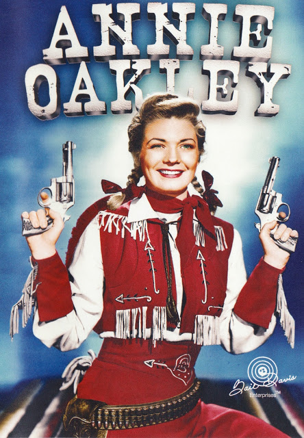 Read more about Annie Oakley at: Wikipedia Official Site: CBS Television Distribution Annie Oakley is an American Western television series that fictionalizes the life of the famous Annie Oakley. (Except for depicting the protagonist as a phenomenal sharpshooter of the period, the program entirely ignores the facts of the historical Oakley's life.) Featuring actress Gail Davis in the title role, the weekly program ran from January 1954 to February 1957 in syndication. A total of 81 black-and-white episodes were produced, with each installment running 25 minutes in length. ABC aired daytime rerun of the series on Saturdays and Sundays from 1959 to 1960 and then again from 1964 to 1965. The show starred Gail Davis as Annie Oakley, with Brad Johnson in the role of Deputy Sheriff Lofty Craig and Jimmy Hawkins as Annie's little brother, Tagg Oakley. Hawkins would ultimately play Tagg in 80 of the series' 81 episodes. In the pilot episode, "Bull's Eye", Tagg was performed by Billy Gray, who is better known for his role as James "Bud" Anderson, Jr., on the television version of Father Knows Best. Following his portrayal of Tagg in the Annie Oakley pilot, Gray opted to join the cast of Father Knows Best, which premiered on television in October 1954, nine months after the initial broadcast of Annie Oakley. In the series, Annie Oakley rode a horse named Target; Tagg's horse was Pixie; and Lofty's mount was named Forest. Annie and Tagg lived in the town of Diablo, Arizona, with their uncle, Sheriff Luke MacTavish, who was frequently away whenever trouble started. It would then be up to straight-shooting Annie and her "silent suitor" Lofty Craig to rescue law-abiding neighbors and arrest outlaws. Often Tagg would be told to stay in town and out of the way; but through either disobedience, the need to relay important new information, or being captured by outlaws, he would usually end up in the middle of each episode's adventure. Annie always wore the same fringed cowgirl outfit, of which 15 or more copies were made throughout the show's production. Her hairstyle was braided pigtail. No match records for this character. No match records for this character. |