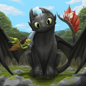 Read more about Toothless at: Wikipedia Official Site: DreamWorks How to Train Your Dragon (or HTTYD) is an American media franchise from DreamWorks Animation and loosely based on the eponymous series of children's books by British author Cressida Cowell. It consists of three feature films: How to Train Your Dragon (2010), How to Train Your Dragon 2 (2014) and How to Train Your Dragon: The Hidden World (2019). The franchise also consists of five short films: Legend of the Boneknapper Dragon (2010), Book of Dragons (2010), Gift of the Night Fury (2011), Dawn of the Dragon Racers (2014) and How to Train Your Dragon: Homecoming (2019). A television series following the events of the first film, DreamWorks Dragons, began airing on Cartoon Network in September 2012. The first and second seasons were titled Dragons: Riders of Berk and Dragons: Defenders of Berk respectively. With the third season onwards, the series moved to Netflix and was retitled Dragons: Race to the Edge, where it served as a prequel to the second film and was released from June 2015 to February 2018. The franchise follows the adventures of a young Viking named Hiccup Horrendous Haddock III (voiced by Jay Baruchel), son of Stoick the Vast, leader of the Viking island of Berk. Although initially dismissed as a clumsy and underweight misfit, he soon becomes renowned as a courageous expert in dragons, beginning with Toothless (Randy Thom), a member of the rare Night Fury breed as his flying mount and his closest companion. Together with his friends, he manages the village's allied dragon population in defense of his home as leader of a flying corps of dragon riders. Upon becoming leaders of their kind, Hiccup and Toothless are forced to make choices that will truly ensure peace between people and dragons. Dean DeBlois, the director of the trilogy, described its story as "Hiccup's coming of age," taking a span of five years between the first and second film, and a year between the second and third film. The film series has been highly acclaimed, with each film nominated for the Academy Award for Best Animated Feature, in addition to the first film's nomination for the Academy Award for Best Original Score. A series of comic books, titled Dragons: Riders of Berk, were released by Titan Comics, starting with the first volume, Dragon Down, on April 30, 2014. The comics were written by Simon Furman and drawn by Iwan Nazif. Other volumes are Dangers of the Deep (2014), The Ice Castle (2015), The Stowaway (2015), The Legend of Ragnarok (2015), and Underworld (2015). Two more comic books were published on February 24, 2016, titled Dragons: Defenders of Berk. The following volumes are The Endless Night (2016) and Snowmageddon (2016). No match records for this character. No match records for this character. |