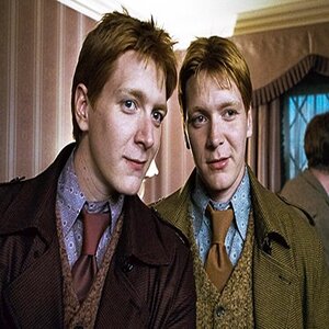 Read more about Fred And George Weasley at: Wikipedia Official Site: J.K. Rowling Fred and George Weasley are fictional characters in the Harry Potter book series written by J. K. Rowling. The characters are the identical twin brothers of the Weasley family, making them the older brothers to Ron and Ginny and friends of Harry Potter. They are initial members of Dumbledore's Army later joining the Order of the Phoenix after their departure from Hogwarts. They are also the founders of Weasley's Wizarding Wheezes in Diagon Alley, a shop they opened post graduation to sell their mischievous pranks. The brothers were played by identical twins James and Oliver Phelps. Fred (1 April 1978 – 2 May 1998) and George (b. 1 April 1978) are the identical twin sons of Arthur and Molly Weasley, the younger brothers of Bill, Charlie, and Percy, and the older brothers of Ron and Ginny, who are both members of Harry Potter's close group of friends. The twins revel in practical jokes and pranks and are generally considered amusing by both the books' characters and readers. Their names mirror those of their deceased uncles Fabian and Gideon Prewett, brothers of their mother, Molly. Like their uncles, they join the fight against Voldemort. While their best friend is Lee Jordan – their classmate, dormmate, and fellow prankster – the twins are also good friends with Harry, having played Quidditch with him for Gryffindor. In fact, they generally treat Harry better than they do Ron. In Harry Potter and the Half Blood Prince, they allow Harry to take anything from their joke shop for free while asking Ron to pay for the bundles of items in his arms (however, given that Harry gave them the money to start the shop, this can be seen as re-paying a debt they feel they owe Harry). They love to torment Percy for being a model student and often their teasing of Ron is less than benign. They are close with Ginny (who closely resembles them both in appearance and personality) and vice versa. Like the other Weasleys, they have flaming red hair and are described as being on the shorter, stockier side like their second older brother Charlie. In the movies, they are both shown as tall, handsome, and thin. They seem to be quite popular among the Gryffindors, as well as with students in other Houses and with some teachers. The twins do appear to have some sense of what is morally right, at times. At the end of the fourth book, Harry gives them his Tri-Wizard winnings so they can start their jokeshop. They argue with him about it, trying to convince him to keep his money, and in the end he actually threatens to jinx them if they don't take it.