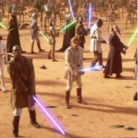 Read more about The Jedi Knights at: Wikipedia Official Site: Lucas Films The Jedi are characters in the Star Wars universe and the series' main protagonists. They use a quasi-telekinetic power, known as the Force, and weapons, known as lightsaber, which emits a controlled energy flow in the shape of a sword, to serve and protect their Republic and the whole galaxy from conflict or government instability. They sometimes moderate peace negotiations between planet and, if necessary, use their formidable fighting skills to quickly end unrest. The Jedi are led by a Council of 12 members consisting of the most powerful and wise members of the order. The Jedi are bound to a code of morality and justice and are trained in the use of the light side of the force but not the Dark side. The Jedi are first introduced in the 1977 film Star Wars Episode IV: A New Hope as an order of warrior monks who serve as "the guardians of peace and justice in the galaxy" and embrace the mystical Force. Obi-Wan Kenobi (Alec Guinness) explains that the Galactic Empire had all but exterminated the Jedi some twenty years before the events of the film, and seeks to train Luke Skywalker (Mark Hamill) to be the Order's last hope. Darth Vader (David Prowse/James Earl Jones) is also established as the Jedi's main enemy. By the end of the film, Luke is on the path to becoming a Jedi. In the sequel, The Empire Strikes Back, Luke receives extensive Jedi training from the elderly Jedi Master Yoda (Frank Oz), even as he learns that Vader is in fact his father, former Jedi Anakin Skywalker. The third film in the original trilogy, Return of the Jedi, ends with Luke redeeming Vader and helping to destroy the Empire, thus fulfilling his destiny as a Jedi. The prequel films depict the Jedi as troubled by the resurgence of the dark side of the Force and determined to fight their mortal enemies, the Sith. In Star Wars Episode I: The Phantom Menace (1999), Jedi Master Qui-Gon Jinn (Liam Neeson) discovers the young Anakin Skywalker (Jake Lloyd), whom he believes to be the "Chosen One" of Jedi prophecy who is destined to bring balance to the Force; the boy is eventually paired with Qui-Gon's apprentice, the young Obi-Wan Kenobi (Ewan McGregor), who promises to train him. The sequel, Attack of the Clones, establishes that the Jedi forswear all emotional attachments, including romantic love, which proves problematic when the now-adult Anakin (Hayden Christensen) falls in love with Padmé Amidala (Natalie Portman). In Revenge of the Sith, Palpatine (Ian McDiarmid), who is really the Sith Lord Darth Sidious, manipulates Anakin's love for Padmé in order to turn him to the dark side and become his apprentice, Darth Vader. Once corrupted, Vader helps Palpatine hunt down and destroy nearly all of the Jedi. The Jedi's history before and after the time-line of the films is established within several novels, comic books and video games in the Expanded Universe of Star Wars media. No match records for this character. Regular play Record: