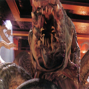 Read more about Octalus at: Wikipedia Official Site: Walt Disney Studious Deep Rising is a 1998 American action horror film directed by Stephen Sommers and starring Treat Williams, Famke Janssen and Anthony Heald. It was distributed by Hollywood Pictures and Cinergi Pictures and released on January 30, 1998. Amidst a storm, Captain John Finnegan and his crew, Joey Pantucci and Leila are hired by mercenaries Hanover, Mulligan, Mason, Billy, T-Ray, Mamooli, and Vivo to pilot their boat across the South China Sea to an undisclosed rendezvous point in the open ocean. Meanwhile, the Argonautica, a luxury cruise ship built and owned by Simon Canton, is undertaking its maiden voyage when a saboteur disables the ship's navigation and communication systems. A large object rises from beneath and rams the vessel, leaving it dead in the water, while the panicking passengers are attacked and slaughtered by unseen creatures. Finnegan's boat collides with a speedboat shaken loose during the collision, at which point the mercenaries take over and reveal they intend to rob the Argonautica's passengers and vault, before sinking the ship with torpedo stowed aboard the boat. The group boards the ship, leaving Leila and Billy behind to repair the boat, where they are both killed by the same creature. The group reaches the ballroom only to find blood and no sign of the passengers. Finnegan and Joey go to the ship's workshop to scavenge parts to repair the boat, under the guard of T-Ray and Mamooli. T-Ray goes off to investigate strange noises and is torn to shreds by the creature. Mamooli contacts Hanover, but is dragged off by the creature; as Joey and Finnegan are escaping they run into Trillian, a passenger who was imprisoned for stealing. Meanwhile, Hanover's group reaches the vault and Vivo opens it only to be mistakenly killed by Canton, who was hiding inside the vault along with Captain Atherton, and three other passengers. Mason and Mulligan panic as Vivo dies and kill the three passengers in retaliation. Canton and Captain Atherton explain to the mercenaries that the ship has been attacked by unknown creatures that killed everyone else on board. Under questioning, Canton is found to be responsible for the ship's sabotage, having hired the mercenaries to sink the unprofitable ship so that he could collect on the insurance. The group is attacked by creatures wielding giant spike-covered tentacles, which eat Captain Atherton. Canton theorizes that the creatures are an extreme evolution of the Ottoia, which drain their victims of their bodily fluids and then eject the carcasses. The creatures attack and the survivors flee; Mason is grabbed by the creature and kills himself by detonating a grenade. Mulligan elects to stay behind in the crew's galley in the last stand until a rescue party can arrive. While arguing with the others, a creature slips in through the range hood; Mulligan scares it off but is ambushed and devoured by another. In a running battle with the creatures, Trillian saves Finnegan's life and the group of survivors find themselves being herded towards the bow of the ship, where they find a "feeding ground" full of chewed-up bloody skeletal remains. Canton, attempting to rid himself of any witnesses to his insurance scam, misleads the others to the bow while he moves towards an exit route. The creatures break through the hull, causing more flooding of the lower decks and separating the survivors. Hanover wounds Joey in an attempt to slow the creatures, but he manages to escape in a dumbwaiter. Joey finds Hanover, being partially devoured by one of the creatures. As an act of mercy, he hands Hanover a handgun. Hanover tries to shoot him in spite; Joey escapes, and Hanover realizes he wasted his last mercy shot as the creature fully swallows him. No match records for this character. No match records for this character. |