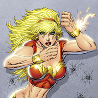 Read more about Wonder Girl (Cassie Sandsmark) at: Wikipedia Official Site: DC Comics Cassandra "Cassie" Sandsmark, a.k.a. Wonder Girl, is a fictional character, a DC Comics superhero. Created by John Byrne, and first appearing in Wonder Woman (vol. 2) #105 (January 1996), she is the half-human daughter of Zeus. Cassandra Sandsmark initially appears as a supporting cast member in Wonder Woman. She later appears as part of an ensemble in Young Justice and Teen Titans. Without a series of her own, she has recently appeared in supporting roles in 52, Supergirl, and the relaunched Wonder Woman series. In September 2007, she appeared in the six-issue limited series Wonder Girl: Champion written by J. Torres and illustrated by Sanford Greene. Cassandra is the third character to be called Wonder Girl; the second being Donna Troy, following the earlier stories of a young Wonder Woman using the name Wonder Girl. Cassandra is the daughter of Dr. Helena Sandsmark, (a noted archaeologist with whom Wonder Woman was working) and the Greek god Zeus. During a fight with a Doomsday clone and another battle with Decay, she created a costume and used magical accoutrements (the sandals of Hermes and the gauntlet of Atlas) to help Wonder Woman, much to her mother's horror. Cassandra later had the opportunity to ask Zeus for a boon, and requested real superpowers. Zeus granted her request, but gave Dr. Sandsmark the ability to deactivate them. Dr. Sandsmark, however, reluctantly accepted her daughter's wish to be a superhero and rarely if ever uses this ability. Cassandra heavily idolized Donna Troy, the original Wonder Girl, and to that effect wore a black wig over her natural blonde hair (it also helped to conceal her identity). Donna gave Cassandra the second costume she wore as Wonder Girl, but Cassandra was afraid to wear it lest it were ruined. She has been trained by Artemis, the former "stand-in" Wonder Woman. As Wonder Girl, Cassandra joined Young Justice due to her crush on Superboy. She became close friends with Arrowette, Secret, and Empress. During her time with that group the dark god Oblivion caused Wonder Woman's Wonder Dome palace to destroy Gateway City. Artemis ordered Cassandra to help with crowd control instead of wasting time putting on her Wonder Girl disguise. Agreeing with her, Cassandra revealed her secret identity before news cameras for the first time in her superhero career. Towards the end of the Young Justice series, Cassandra became the leader of the team, after beating Robin during an election for command. Her secret identity was again publicly revealed when the second Silver Swan attacked her at her high school. No match records for this character. Regular play Record: