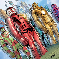 Read more about Celestials at: Wikipedia Official Site: Marvel Comics The Celestials are a group of fiction characters that appear in comic book published by Marvel Comics. The characters first appear in Eternals #1 (July 1976) and were created by writer-artist Jack Kirby. Debuting in the Bronze Age of Comic Books, the Celestials have appeared in four decades of Marvel continuity and other associated merchandise such as trading card. The Celestials debuted in Eternals #1 (July 1976) and reappeared as regular guests stars in three subsequent limited series sequels: Eternals vol. 2, #1 - 12 (Oct. 1985 - Sep. 1986); Eternals vol. 3, #1 - 7 (Aug. 2006 - Feb. 2007), and Eternals vol. 4, #1 - 9 (Aug. 2008 - May 2009). The Celestials reappeared in the "Celestial Saga" storyline in Thor Annual #7 (1978) and Thor #283 – 300 (May 1979 - Oct. 1980), and once again in Thor #387 – 389 (Jan. – March 1988). The characters reappeared in Quasar #24 (July 1991) and Fantastic Four #400 (May 1995).