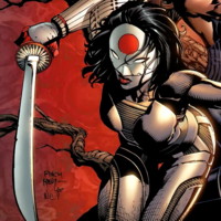 Read more about Katana at: Wikipedia Official Site: D.C Comics Katana is a fictional character, a superheroine published by DC Comics. She first appeared in The Brave and the Bold #200 (July 1983), and was created to be a member of the first Outsiders team by writer Mike W. Barr and artist Jim Aparo. Tatsu Yamashiro was an average Japanese girl, save for her proficiency in the martial arts, a trait encouraged by her parents. Two brothers - Maseo and Takeo Yamashiro - both proclaimed their love for her. While she liked both, she chose Maseo. Takeo, "did not take this well," and refused to attend the couple's wedding. Unmissed - indeed, Maseo (his only family) disowned his brother, who had joined the Yakuza, taking their mark of a large dragon tattoo across his chest - Tatsu and Maseo, mourning the deaths of Tatsu's parents, (cause unknown) started a family of their own. Tatsu gave birth to twins, Yuki and Reiko, while Takeo rose in rank of the Yakuza, indulging his "exotic tastes" for ancient weapons. He was presented with a pair of matching swords by General Karnz (later henchman to Baron Bedlam), one of which Takeo favored for its mystical properties. Takeo spent days preparing himself, before taking both swords to the Yamashiro residence, demanding his brother duel for the "prize" of Tatsu. Eventually Tatsu journeyed to Markovia, a small Baltic state, where she had tracked down Karnz, and she was successful in killing him, inadvertently implicating Black Lightning (coincidentally there with Batman) in her crime. Attempting to rectify the misunderstanding by freeing Black Lightning, she encountered a young girl who was named Halo. The two joined up to rescue Black Lightning, Batman (himself captured due to a blunder by Halo), and Bruce Wayne's employee Lucius Fox from their captor, Baron Bedlam.