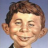 Read more about Alfred E. Neuman at: Wikipedia Official Site: D.C. Alfred E. Neuman is the fictional mascot and iconic cover boy of Mad magazine. The face had drifted through American pictography for decades before being claimed and named by Mad editor Harvey Kurtzman. Since his debut in Mad, Neuman's likeness, distinguished by jug ears, a missing front tooth, and one eye disquietingly lower than the other has graced the cover of all but a handful of the magazine's 500 issues. His face is rarely seen in profile; he has virtually always been shown in full frontal view, directly from behind, or in silhouette. Harvey Kurtzman first spotted the image on a postcard pinned to the office bulletin board of Ballantine Books editor Bernard Shir-Cliff. "It was a face that didn't have a care in the world, except mischief," recalled Kurtzman. Shir-Cliff was later a contributor to various magazines created by Kurtzman. In November 1954, Neuman made his Mad debut on the front cover of Ballantine's The Mad Reader, a paperback collection of reprints from the first two years of Mad. The character's first appearance in the comic book was on the cover of Mad 21 (March 1955), as a tiny image as part of a mock ad. A rubber mask bearing his likeness with "idiot" written underneath was offered for $1.29. No match records for this character. Regular play Record: