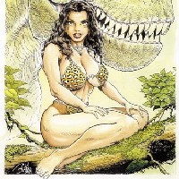 Read more about Cavewoman at: Wikipedia Official Site: Basement Comics Cavewoman is an American comic book published primarily by Basement Comics and additionally by Caliber Comics and Avatar Press. The story follows superhuman Meriem Cooper, a voluptuous barefoot jungle goddess in a snakeskin bikini, who battles dinosaur. Created by writer-artist Budd Root, Cavewoman was inspired by Little Annie Fanny and William Stout. Meriem Cooper first appeared in Basement Comics' Cavewoman #1 (Dec. 1993), the first issue of a black-and-white, independent comics miniseries that ran six issues. She reappeared in the eight-issue miniseries Cavewoman: Rain (1996-1997) from Caliber Comics; the one-shot Cavewoman Meets Explorers (1997), jointly from Basement Comics and Explorer Press; the one-shot Jungle Tales of Cavewoman (1998), released in both a standard and a mature-audience edition; Cavewoman: Odyssey #1, the only issue of a planned five-issue miniseries from Caliber Comics; and other titles through at least 2001. As of 2008, Meriem appears in the ongoing series Cavewoman: Pangean Sea and the semi-regular mature series Prehistoric Pin-ups and Jungle Tales. The story of Cavewoman is rooted deeply in science fiction. No match records for this character. Regular play Record: