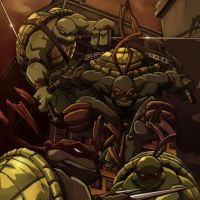 Read more about Teenage Mutant Ninja Turtles (Mirage) at: Wikipedia Official Site: Mirage Studios The Teenage Mutant Ninja Turtles (or simply Ninja Turtles) are a fictional team of four anthropomorphic turtle, who were trained by their anthropomorphic rat sensei in the art of ninjutsu and named after four Renaissance artists. From their home in the storm sewers of New York City, they battle petty criminals, evil megalomania, and alien invader, all while remaining isolated from society at large. The characters initially appeared in comic book before being licensed for toys, cartoons, video games, films, and other merchandise. During the peak of its popularity in the late 1980s through early 1990s, the franchise gained considerable worldwide success and fame. Teenage Mutant Ninja Turtles originated in an American comic book published by Mirage Studios in 1984 in Dover, New Hampshire. The concept arose from a humorous drawing sketched out by Kevin Eastman during a casual evening of brainstorming with his friend Peter Laird. Using money from a tax refund together with a loan from Eastman's uncle, the young artists self-published a single issue comic intended to parody four of the most popular comics of the early 1980s: Marvel Comics' Daredevil and New Mutants, Dave Sim's Cerebus, and Frank Miller's Ronin. Much of the Turtles' mainstream success began when a licensing agent, Mark Freedman, sought out Eastman and Laird to propose wider merchandising opportunities for the offbeat property. In 1986, Dark Horse Miniatures produced a set of 15 mm lead figurines. In January 1988, they visited the offices of Playmates Toys Inc, a small California toy company who wished to expand into the action figure market. Development initiated with a creative team of companies and individuals: Jerry Sachs, ad man of Sachs-Finley Agency, brought together the animators at Murakami-Wolf-Swenson, headed by award-winning animator Fred Wolf. Wolf and his team combined concepts and ideas with Playmates marketing crew, headed by Karl Aaronian and then VP of Sales, Richard Sallis and VP of Playmates, Bill Carlson. Aaronian brought on several designers and concepteer and writer John Schulte and worked out the simple backstory that would live on toy packaging for the entire run of the product and show. Sachs called the high-concept pitch "Green Against Brick". The sense of humor was honed with the collaboration of MWS's writers. Playmates and their team essentially served as associate producers and contributing writers to the miniseries that was first launched to sell-in the toy action figures. Phrases like "Heroes in a Half Shell" and many of the comical catch phrases and battle slogans ("Turtle Power!") came from the writing and conceptualization of this creative team. As the series developed, veteran writer Jack Mendelsohn came on board as both a story editor and scriptwriter. David Wise, Michael Charles Hill, and Michael Reaves wrote most of the scripts, taking input via Mendelsohn and collaborating writer Schulte and marketing maven Aaronian. The miniseries was repeated three times before it found an audience. Once the product started selling, the show got syndicated and picked up and backed by Group W, which funded the next round of animation. The show then went network, on CBS. Accompanied by the popular Teenage Mutant Ninja Turtles 1987 TV series, and the subsequent action figure line, the TMNT were soon catapulted into pop culture history. At the height of the frenzy, in the late 1980s and early 1990s, the Turtles' likenesses could be found on a wide range of children's merchandise, from Pez dispenser to skateboard, breakfast cereal, video games, school supplies, linens, towels, cameras, and even toy shaving kits.