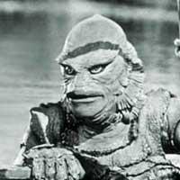 Read more about The Creature (Gill-man) at: Wikipedia Official Site: universal studios Creature from the Black Lagoon is a 1954 monster horror film directed by Jack Arnold, and starring Richard Carlson, Julia Adams, Richard Denning, Antonio Moreno, and Whit Bissell. The eponymous creature was played by Ben Chapman on land and Ricou Browning in underwater scenes. The film was released in the United States on March 5 1954. Creature from the Black Lagoon was filmed and originally released in 3-D requiring polarized 3-D glasses, and subsequently reissued in the 1970s in the inferior anaglyph format (this version was released on home video by MCA Videocassette, Inc. in 1980). It was one of the first Universal Pictures films filmed in 3-D (the first was It Came from Outer Space, which was released a year before). It is considered a classic of the 1950s, and generated two sequels, Revenge of the Creature and The Creature Walks Among Us. Revenge of the Creature was also filmed and released in 3-D, in hopes of reviving the format. A geology expedition in the Amazon uncovers fossil evidence from the Devonian period of a link between land and sea animals in the form of a skeletal hand with webbed fingers. Expedition leader Dr. Carl Maia visits his friend, Dr. David Reed, an ichthyologist who works at a marine biology institute. Reed persuades the institute's financial backer, Mark Williams, to fund a return expedition to the Amazon to look for the remainder of the skeleton. They go aboard a tramp steamer, the Rita, which is captained by a crusty old codger named Lucas. The expedition consists of Dr. Reed, Dr. Maia and Williams, as well as Reed's girlfriend, Kay Lawrence, and another scientist, Dr. Thompson. When they arrive at Dr. Maia's camp, they discover that his entire research team has been mysteriously killed while he was away. Lucas suggests it was done by a jaguar, but the others are unsure. The audience is privy to the attack upon the camp, which was committed by a living version of the fossil the scientists seek-curious upon seeing the expedition, the creature investigates the camp site, but its sudden appearance frightens the members, who attack it, whereupon the enraged creature kills them in response. The excavation of the area where Maia found the hand turns up nothing. Mark is ready to give up the search, but David suggests that perhaps thousand of year ago the part of the embankment containing the rest of the skeleton fell into the water and was washed downriver. Lucas says that the tributary empties into a lagoon known as the "Black Lagoon," a paradise from which no one has ever returned. The scientists decide to risk it, unaware that the amphibious "Gill-man" that killed Dr. Maia's assistants earlier has been watching them. Taking notice of the beautiful Kay, it follows the Rita all the way downriver to the Black Lagoon. Once the expedition arrives, David and Mark go diving to collect fossils from the lagoon floor. After they return, Kay goes swimming and is stalked underwater by the creature, who then gets briefly caught in one of the ship's draglines. Although it escapes, it leaves behind a claw in the net, revealing its existence to the scientists.