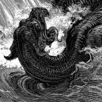 Read more about Leviathan at: Wikipedia Official Site: Public Domain Leviathan ( ; ), is a sea monster referred to in the Bible. In Demonology, Leviathan is one of the seven princes of Hell and its gatekeeper (see Hellmouth). The word has become synonymous with any large sea monster or creature. In classical literature (such as the novel Moby-Dick) it refers to great whale, and in Modern Hebrew, it means simply "whale." The Leviathan is mentioned six times in the Hebrew Bible, with Job 41 being dedicated to describing him in detail: : 1 Can you pull in the leviathan with a fishhook or tie down his tongue with a rope? : 2 Can you put a cord through his nose or pierce his jaw with a hook? No match records for this character. Regular play Record: