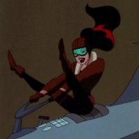 Read more about Roxy Rocket at: Wikipedia Official Site: DC Comics Roxy Rocket is a fiction character, a minor comic book supervillainess. Originally created in 1994 for The Batman Adventures Annual #1, a series published by DC Comics, based on Batman: The Animated Series, Roxy was incorporated into The New Batman Adventures in the episode "The Ultimate Thrill", which first aired on September 14, 1998. Shortly thereafter, Roxy appeared in "Knight Time", an episode of Superman: The Animated Series. Roxy later appeared in several comic books based on the TV show. In 2006, the character was introduced to the main DC Universe. She was voiced by Charity James. Roxanne "Roxy Rocket" Sutton was formerly a stunt double for a Hollywood actress. However, she lost her job after she tried to make her stunts too dangerous for any company to insure her. Out of work, but still hungering for thrills, Sutton began stealing jewels for The Penguin. Unlike other villains in Gotham City, Roxy's crimes were fairly benign. She was always the one being put at risk. Batman also took risks in his attempts to catch Roxy in midair chases, leading Roxy to believe Batman was a kindred spirit who understood the pleasure of risk-taking, leading to her falling in love with the Dark Knight. In the end, however, Roxy realized her crush was unrequited when Batman had her arrested. Roxy next appeared in Knight Time, an episode of Superman: The Animated Series. In what amounts to a cameo appearance, Roxy tries her luck in Metropolis, where she ends up tipping off Superman to the fact that Batman is conspicuously absent in Gotham. Unlike Batman (who can't fly), Superman picks Roxy off her rocket speeder with no effort at all. The episode eventually leads to a team-up between Robin and Superman. In both appearances, Roxy was voiced by Charity James. Roxy Rocket makes a cameo appearance in the pages of Detective Comics #822, written by Paul Dini. She is trying to shake Batman off her rocket after she has stolen ion thruster plans from Gotham's S.T.A.R. Labs. This does not work. They crash high on the Sprang River Bridge and it takes Batman an hour and a half to get them both down. This is her first appearance in the DC Universe. No match records for this character. Regular play Record: