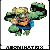Read more about Abominatrix at: Wikipedia Official Site: Marvel Comics Abominatrix is a fictional human mutate supervillain in the Marvel Universe. The character first appeared in Sensational She-Hulk #21 (November 1990). Florence Sharples worked for Jasper Keaton, manager of a saving and loan company. Keaton sponsored genetic research, seeking a cure for pre-menstrual syndrome. Sharples was transformed into the Abominatrix as an accidental effect of the "cure". No match records for this character. Regular play Record:
