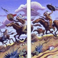 Read more about Indians (Native Americans) at: Wikipedia Official Site: Public Domain The indigenous peoples of the Americas are the pre-Columbian inhabitants of North and South America, their descendants, and many ethnic group who identify with those peoples. They are often also referred to as Native Americans, Aboriginals, First Nations and by Christopher Columbus' geographical and historical mistake, Indians, now disambiguated as the American Indian race, American Indians, Amerindians, Amerinds, or Red Indians. According to the New World migration model, a migration of humans from Eurasia to the Americas took place via Beringia, a land bridge which connected the two continents across what is now the Bering Strait. The most recent point at which this migration could have taken place is c. 12,000 years ago, with the earliest period remaining a matter of some unresolved contention. These early Paleo-Indians soon spread throughout the Americas, diversifying into many hundreds of culturally distinct nations and tribes. According to the oral histories of many of the indigenous peoples of the Americas, they have been living there since their genesis, described by a wide range of traditional creation accounts. Application of the term "Indian" originated with Christopher Columbus, who thought that he had arrived in the East Indies, while seeking Asia. Later the name was still used as the Americas at the time were often called West Indies. This has served to imagine a kind of racial or cultural unity for the aboriginal peoples of the Americas. Once created, the unified "Indian" was codified in law, religion, and politics. The unitary idea of "Indians" was not originally shared by indigenous peoples, but many over the last two centuries have embraced the identity. While some indigenous peoples of the Americas were historically hunter-gatherer, many practiced aquaculture and agriculture. The impact of their agricultural endowment to the world is a testament to their time and work in reshaping, taming, and cultivating the flora indigenous to the Americas. Some societies depended heavily on agriculture while others practiced a mix of farming, hunting, and gathering. In some regions the indigenous peoples created monumental architecture, large-scale organized cities, chiefdom, states, and empire. No match records for this character. Regular play Record: