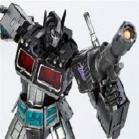 Read more about Nemesis Prime at: Wikipedia Official Site: Hasbro Toy shop Nemesis Prime is the name of several fictional characters from the Transformers storyline. He is often depicted as an evil incarnation of Optimus Prime. In "puppet" in the Armada universe, Nemesis Prime (Scourge in the Japanese version) was a monstrous Transformer, controlled by Sideways, sent to kill the Autobots and Decepticons while they were on their way to Cybertron. It scanned the minds of the Transformers that landed on the planet it was waiting on to ambush them and took the form of Optimus Prime as he was the most powerful and respected in all their minds. As a duplicate of Optimus Prime, Nemesis had all of Prime's strength and power - in addition to his ability to reconstruct himself. Nemesis Prime subsequently attacked and decimated the two sides, leaving most of the Transformers heavily damaged. However, they were then restored and their abilities enhanced by the powers of their Mini-Con, and Nemesis Prime was subsequently destroyed by the power of Optimus Prime (powerlinked with Overload) and Galvatron, the newly reformatted form of Megatron. Nemesis Prime wielded the Dark Saber, a twisted clone of the Star Saber, and had a Mini-Con partner named Run-Over. Run-Over was only seen alongside Nemesis Prime in the Linkage DVD comics released in Japan. Here, he was used in gun mode, to help Nemesis Prime create an artifact called the "Doomstone," made of the death agonies of their victims. The Doomstone is an artifact of immense power, capable of destroying a soul-dimension such as the Linkage. If destroyed, the energy released could also wipe out all life on a planet. In the anime, Nemesis Prime had a trailer not unlike Optimus Prime's in terms of design and could presumably transform to super mode with it. But the toy came without a trailer and contained none of the circuitry required to transform a trailer.