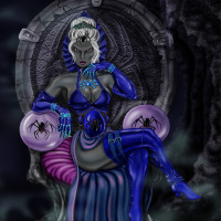 Read more about Lloth at: Wikipedia Official Site: Forgotten Realms Lolth is a fictional goddess in the Dungeons and Dragons fantasy role-playing game. Lolth (Lloth in the drow dialect), the Demon Queen of Spiders, is the chief goddess of drow elves. She is also known as the Spider Queen and the Queen of the Demonweb Pits. Lolth was created by Gary Gygax for the World of Greyhawk campaign setting, later appeared in the Forgotten Realms setting, and in 3rd edition became a member of the default pantheon of D&D gods. In those various settings, the drow pantheon of gods consists of the leader Lolth, as well as Kiaransalee, Vhaeraun, and Zinzerena and also the one good goddess Eilistraee. Other drow gods may be present in different campaign settings. According to the Forgotten Realms storyline, Lolth began as an intermediary goddess abiding in the sixty-sixth layer of the Abyss, the Demonweb Pits. Through the events that transpired in War of the Spider Queen series, she transformed herself into a greater goddess as she is depicted now in 4th edition, the Demonweb Pits becoming its own plane. To: "Kim NEVELSTEEN" No match records for this character. Regular play Record:
