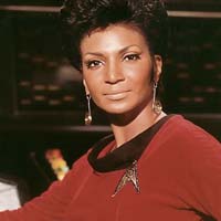 Read more about Nyota Uhura at: Wikipedia Official Site: Paramount Television Nyota Uhura ( ), originally played by Nichelle Nichols, is a character in Star Trek: The Original Series, Star Trek: The Animated Series, the first six Star Trek films, and the 2009 film Star Trek. In the 2009 film, a younger Uhura is portrayed by actress Zoe Saldana. Uhura was an important part of the original series' multicultural crew and one of the first characters of African descent to be featured on an American television series. Uhura's first name was not used in Star Trek canon until Abrams's 2009 film, in a scene where the young Spock calls her "Nyota" in a moment of intimacy. Although other non-canon names had previously existed, "Nyota" had been the most common. Author William Rotsler created the name "Nyota" for his 1982 licensed tie-in book, Star Trek II Biographies published by Wanderer (Pocket) Books. Seeking approval for the name he contacted Gene Roddenberry and Nichelle Nichols. Gene Roddenberry approved of the name. Nichelle Nichols also approved and was very excited when Rotsler informed her that Nyota means "star" in Swahili. After originating in Star Trek II Biographies "Nyota" started appearing in Star Trek novels, such as Uhura's Song by Janet Kagan. Until the 2009 film became part of the franchise's canon, "Nyota" was one of three possibilities; the other two were "Penda" and "Samara":