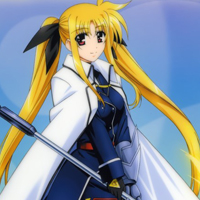 Read more about Fate Testarossa Harlaown at: Wikipedia Official Site: Geneon Entertainment , also known as in A's epilogue and StrikerS, is a fictional character in the anime series Magical Girl Lyrical Nanoha. She is voiced by Nana Mizuki. In the first season, Fate is a mage from the Garden of Time, who is sent to collect Jewel Seeds, which puts her at odds with rival Nanoha Takamachi. She is aided on her quest by an animal familiar, a mature dog-woman named Arf, and is at constant odds against her rival Nanoha Takamachi. In the second and third season she works as a TSA officer. Fate first appears in episode 4 with her familiar Arf and her device Bardiche, materializing in the town in search of Jewel Seeds. It is soon apparent that not even Fate knows why she is looking for these specimens of Lost Logia (the series' term for ancient magical artifacts), but she does not care, stating, "I must get them, because my mother wants them." Fate is initially dismissive of her young and naive rival, Nanoha, and tells her that her quest is worthless, but Nanoha's steadfast dedication to reforming Fate gets to her heart, and she begins to wane. However, this does not impress Fate's mother, Precia Testarossa, who torture the girl for not getting all the Jewel Seeds. Fate remains loyal despite Arf's protests; she remembers a time when Precia was kind and stable, and thinks that the Jewel Seeds will cure her mother's insanity. Fate teleports to her home from the top of an office building with complicated coordinates and magic. Her home is in a gloomy hideout in the Garden of Time with her mother and Arf, sharing a room with the latter. She appears in the city whenever she senses a Jewel Seed, as she has no school and nothing else to do. This is also the reason why she spends much of this season in her transformed state. No match records for this character. No match records for this character. |