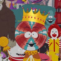 Read more about Citizens of Imaginationland at: Wikipedia Official Site: Comedy Central "Imaginationland Episode I", or "Kyle sucks Cartman's Balls"is the tenth episode of the 11th season of Comedy Central's animated television series South Park. "Imaginationland' premiered on October 17, 2007. It is the first episode in a three-part story arc that won the 2008 Emmy for "Outstanding Animated Program for One Hour or More". The three episodes were later reissued together, along with previously unreleased footage, as the uncensored Imaginationland: The Movie. The episode is rated TV-MA-LV. The episode begins with Cartman directing the other boys through a forest in search of a leprechaun. A skeptical Kyle is there, having made a bet that if Cartman can prove leprechauns exist, Kyle will suck Cartman's balls, but if not, Cartman will owe Kyle $10. To Kyle's shock, they do spot a leprechaun and give chase. They eventually successfully catch it in a trap. The leprechaun says he was sent to warn of a terrorist attack, and that being chased by the boys has made him late, before vanishing. A triumphant Cartman declares that Kyle must now suck his balls, but Kyle initially refuses, asking why a leprechaun would be warning of a terrorist attack and insisting that there has to be a logical explanation. The next day, as Kyle is conversing with Stan, Kenny, Jimmy and Butters, a strange man suddenly appears (Dreamfinder from Epcot's Journey Into Imagination), asking them if they have seen the leprechaun. When Kyle argues that leprechauns are just imaginary, the man tells him that just because something is imaginary doesn't mean it is not real. He then invites the boys for a ride in his magical "Imagination Flying Machine" while he serenades them with "The Imagination Song" (consisting simply of the word 'imagination' sung repetitively in various tonal inflection). The group arrives in a place called Imaginationland, where all the beings created by human imagination reside, including: Mario, Santa Claus, Rapunzel, Dick Tracy, Mr. Clean, Jason Bourne, Cinderella, Napoleon Dynamite, the Teenage Mutant Ninja Turtles, Fat Albert, Count Chocula, Edward Scissorhands, Bigfoot and John Wayne's character Rooster Cogburn from True Grit, and the strange man turns out to be the Mayor of this land. The imaginary creatures are all fascinated by the presence of "creators", and ask them about the leprechaun. At that moment a band of Muslim terrorists suddenly appear and set off a series of bombs, which kill hundreds of the imaginary creatures and destroy most of the city, with Stan watching in a manner quite like that of Tom Hanks' character during the initial beach-head storm in Saving Private Ryan. The boys flee on the back of a Scottish dragon who flies them to safety. Butters, however, gets left behind, and he and the surviving imaginary characters are taken hostage by the terrorists. The next morning, Kyle wakes up in his bed, and is at first sure the whole thing must have been a dream — until he calls Stan who tells him the same story. They also discover that Butters is missing, much to his parents' shock. Meanwhile, Cartman, angry that Kyle has refused to fulfill his part of their agreement, takes Kyle to court, where the judge sees the contract Kyle signed and orders Kyle to suck Cartman's balls within twenty-four hours or he will be arrested. The United States Department of Defense has received a video from the terrorists, which shows they are holding the survivors of the attack hostage, including Butters. Butters reads a note from the terrorists at gunpoint, and cries out to Stan and Kyle as the video ends. Unsure of how to counter the terrorists, they turn to Hollywood, hoping that they can use their creativity to get ideas. After being disappointed by several directors, including M. Night Shyamalan (who can offer nothing but twist endings) and Michael Bay (who just suggests random action sequences), they seek the advice of Mel Gibson, who suggests that they examine the video the terrorists sent and determine if there is anyone in it that somehow doesn't fit. The officials at the Pentagon immediately perform a background check on the video and realize that Butters is not an imaginary character. The general orders his men to locate both Stan and Kyle. No match records for this character. Regular play Record: