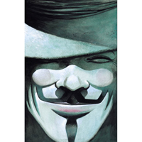 Read more about V at: Wikipedia Official Site: DC Comics - Vertigo Imprint : V is a fictional character from the comic book series V for Vendetta, created by Alan Moore and David Lloyd. He is a mysterious anarchist vigilante and freedom fighter, easily recognizable by his Guy Fawkes mask and dark clothing. According to Moore, he was designed to be both a protagonist and antagonist, so that readers could decide for themselves whether he was a hero fighting for a cause, or simply insane. The background and identity of V is largely unknown. He is at one point an inmate at "Larkhill Resettlement Camp" - one of many concentration camp where political prisoner, homosexuals, Jew, Pakistan, Muslim and black people are exterminated by Britain's new fascist regime, Norsefire. While there, he is part of a group of prisoners who are subjected to horrific medical experimentation, conducted by Dr. Delia Surridge, involving artificially-designed hormone injection. Lewis Prothero is the camp's commandant, and a paedophile priest, Father Lilliman, is at the camp to lend "spiritual support". All prisoners so injected soon die under gruesome circumstances, with the sole exception of "the man in room five" ("V" in Roman numeral). During that time, the man had some level of communication with Valerie Page, a lesbian former actress, kept in "room four", who wrote her autobiography on toilet paper and then pushed it through a hole on the wall. Although there is nothing physically wrong with him, Surridge theorizes that his mind had been warped by the experimentation. Still, his actions seem to maintain a twisted logic. The experiments actually yield some beneficial results: he develops Olympic-level reflex, increased strength, and incredibly expanded mental capacity (as demonstrated consistently throughout the novel, V is a genius in the fields of explosives, martial arts, philosophy, literature, politics, hacking, music, chemistry, and gardening (as stated in the graphic novel by Dr. Surridge)).