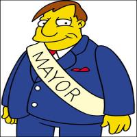 Read more about Joe Quimby at: Wikipedia Official Site: Fox Mayor Joseph "Joe" Quimby, nicknamed "Diamond Joe," is a recurring character from the animated television series The Simpsons. He is voiced by Dan Castellaneta, and first appeared in the episode "Bart Gets an F". A member of the Democratic Party, Quimby is the mayor of Springfield, and is a composite parody of U.S. Senator Ted Kennedy and certain other members of the Kennedy family who have entered politics. Joe Quimby is largely a parody of Massachusetts Senator Ted Kennedy, as well as of corrupt politics in general. His name references NW Quimby Street in Portland, Oregon, the hometown of show creator Matt Groening, and also pays homage to Tom and Jerry's producer Fred Quimby. Castellaneta voices Quimby with somewhat considerable New York and Boston Irish accents, resulting in a voice somewhat reminiscent of that of President John F. Kennedy. Quimby has long served as the mayor of the city of Springfield in The Simpsons TV series. He appears as a slick, opportunistic politician whose chief priorities seem to be keeping himself in office, womanizing, and various other forms of corruption, including embezzling tax money, taking bribes from Fat Tony, the local Mafia Don, and giving monthly kickback to Police Chief Wiggum. The seal on the wall of his office reads "Corruptus in Extremis". , which means "extremely corrupt". He is known to be a womanizer, and to occasionally amuse himself with pornographic playing card during town meetings. Quimby was once the subject of 27 separate paternity suit. One of the women he impregnated is Cookie Kwan, whose baby is remarkably similar to Quimby in both looks and mannerisms. Quimby also is frequently noticed in bed with the same or similar blonde woman/women, at least one of whom was Miss Springfield. No match records for this character. No match records for this character. |