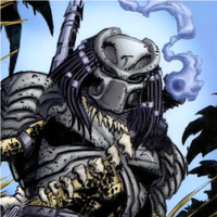 Read more about Smiley Predator at: Wikipedia Official Site: Twentieth Century Fox Aliens vs. Predator (also known as AVP) comics are part of the crossover franchise originated and published by Dark Horse Comics. According to the notes which accompany the first Aliens versus Predator graphic novel, the original idea of combining the Aliens with Predator was the result of a brain-storming session between the comic's creators (AVP artist and editor Chris Warner is specifically credited) in the late 1980s. The first Aliens versus Predator centers on Ryushi, a recently-colonized planet, and Machiko Noguchi, the Chigusa Corporation's administrator there. The settlers on Ryushi raise cattle-like quadrupedal ungulates called rhynth for export to other solar systems, and at the time of the story are in the process of assembling a shipment of the native livestock. Unbeknownst to the colonists, Ryushi is a traditional hunting ground of the Predators, and they are returning for their initiation rites. Onboard the Predator ship, the prey are prepared : an Alien queen lays eggs for delivery to Ryushi. Confounding the Predator's safeguards, this queen manages to slip an egg containing the seed of another queen into the shipment. On reaching Ryushi, the eggs hatch and infect Rhynths. Led by a Predator elder, "Broken Tusk", the Predators arrive expecting to encounter Aliens. However, they soon run into the settlers and, after Broken Tusk is incapacitated, change their plans and hunt them instead.