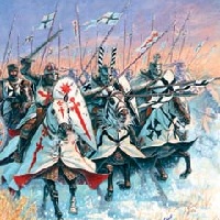 Read more about Knights at: Wikipedia Official Site: Public Domain A knight is a member of the warrior class of the Middle Ages in Europe who followed a code of law called "chivalry". In other Indo-European languages, cognates of cavalier or rider are more prevalent (e.g., French chevalier and German Ritter), suggesting a connection to the knight's mode of transport. Since antiquity a position of honour and prestige has been held by mounted warriors such as the Greek hippeus and the Roman eques, and knighthood in the Middle Ages was inextricably linked with horsemanship. The British legend of King Arthur was popularised throughout Europe in the Middle Ages by the Welsh cleric Geoffrey of Monmouth in his Historia Regum Britanniae ("History of the Kings of Britain"), written in the 1130s. Sir Thomas Malory's Le Morte d'Arthur ("The Death of Arthur"), written in 1485, was important in defining the ideal of chivalry which is essential to the modern concept of the knight as an elite warrior sworn to uphold the values of faith, loyalty, courage, and honour. During the Renaissance, the genre of chivalric romance became popular in literature, growing ever more idealistic and eventually giving rise to a new form of realism in literature popularised by Miguel de Cervantes' Don Quixote. This novel explored the ideals of knighthood and their incongruity with the reality of Cervantes' world. In the late medieval period, new methods of warfare began to render classical knights in armour obsolete, but the titles remained in many nations. Some orders of knighthood, such as the Knights Templar, have themselves become the object of legend; others have disappeared into obscurity. Today, a number of orders of knighthood continue to exist in several countries, such as the English Order of the Garter, the Swedish Royal Order of the Seraphim, and the Royal Norwegian Order of St. Olav. Each of these orders has its own criteria for eligibility, but knighthood is generally granted by a head of state to selected persons to recognise some meritorious achievement. The word knight, from Old English cniht ("boy" or "servant"), is a cognate of the German word Knecht ("servant, bondsman"). This meaning, of unknown origin, is common among West Germanic languages (cf: Old Frisian kniucht, Dutch knecht, Danish knægt, Swedish knekt, Middle High German kneht, all meaning "boy, youth, lad", as well as German Knecht "servant, bondsman, vassal"). No match records for this character. Regular play Record: