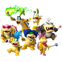 Read more about Koopalings at: Wikipedia Official Site: Nintendo The , also called the Koopa Kids, are a group of seven fictional characters in Nintendo's Mario series of video game. Their names are Ludwig von Koopa, Lemmy Koopa, Roy Koopa, Iggy Koopa, Wendy O. Koopa, Morton Koopa Jr. and Larry Koopa. They first appeared in the NES game Super Mario Bros. 3, and again in the Super NES games Super Mario World and Yoshi's Safari. Following these appearances, however, they were not seen in any major roles until 15 years after Yoshi's Safari in the Wii game New Super Mario Bros. Wii. They were originally conceived as a replacement for recurring appearances of series villain Bowser; series creator Shigeru Miyamoto tasked the designers of Super Mario Bros. 3 with creating Koopalings, and the seven best designs were chosen as the basis for the characters. Their names and appearances are based on music, particularly rock and roll. They have made several appearances in other media, most notably in the cartoon The Adventures of Super Mario Bros. 3, which featured entirely different names for the Koopalings due to them not having official names by the time of its airing. Since Super Mario Bros. 3, they have received positive reception, with critics citing them for adding variety to the series' villains compared to when the series merely featured Bowser multiple times. Critics bemoaned the lack of the Koopalings in many games, commenting on how it has taken more than 15 years for them to get another major appearance, as well as criticizing Bowser Jr. for replacing them. The Koopalings were conceived by various game designers who were challenged to come up with new bosses for Super Mario Bros. 3; the favourite designs were chosen for the seven Koopalings. Most of the Koopalings have wild punk hairstyles and are named after musicians. Iggy Koopa's name comes from Iggy Pop; Morton Koopa, Jr.'s name comes from Morton Downey, Jr., while the scar star on his eye is based on KISS guitarist Paul Stanley's makeup; Lemmy Koopa's name comes from Lemmy Kilmister of Motörhead; Ludwig Von Koopa's name and hairstyle comes from Ludwig van Beethoven; Roy Koopa's name comes from Roy Orbison, as do his horn-rimmed glasses; Wendy O. Koopa's name comes from Wendy O. Williams; and Larry Koopa's name comes from Larry King. The names of the Koopalings in the DiC-made The Adventures of Super Mario Bros. 3 show were made due to the fact that at the time, none of the Koopalings had names yet, requiring them to name them themselves. The Koopalings first appeared in the NES video game, Super Mario Bros. 3, where they each conquer one of seven kingdoms in the Mushroom World, transform their kings into various creatures, and steal their wands. After being defeated, they would again appear in the Super NES video game Super Mario World, where each Koopaling captured a Yoshi egg and lay in wait in a castle in each of the game's seven worlds. They have also made appearances in other Mario titles, including Hotel Mario, Yoshi's Safari, and Mario is Missing!. Since Hotel Mario, they had not made an appearance in a video game for nine years, until the 2003 Game Boy Advance video game Mario & Luigi: Superstar Saga. Though they were intended to have appeared in Super Princess Peach in some fashion, they were ultimately removed from the game. When Electronic Gaming Monthly brought up the Koopa Kids and why they weren't in the Wii game Super Mario Galaxy, director Yoshiaki Koizumi commented that he didn't feel that they fit in it well. Aside from brief mentions and a cameo appearance of one of the Koopalings in Super Smash Bros. Brawl, they again were never seen in a video game, until six years later with the 2009 release of New Super Mario Bros. Wii, acting in a similar capacity to their roles in their first two games. No match records for this character. No match records for this character. |
