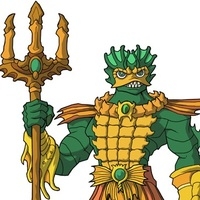 Read more about Mer-Man at: Wikipedia Official Site: Mattel The following is a list of the numerous characters within the Masters of the Universe animated series, film, toy lines, and spin-offs. (Real name: Adam of the House of Randor): He-Man is "the most powerful man in the universe" and the alter-ego of 16-year-old Prince Adam. He is armed with a power harness that enhances his strength, the Sword of Power, and a shield. Depending on his transformation to He-Man, at times he is also armed with plate armor, a battle ax, or deadly snake pinchers. In the 80s series, Prince Adam and He-Man are almost identically drawn, the difference being that Adam has lighter blond hair and paler skin, while He-Man has bronzed skin and more golden hair. In the 2002 series, Prince Adam resembles a teenager and is slender, with blond eyebrows and pants (versus 80s Adam's tights). He speaks with a higher tone of voice and often comes across as a clueless adolescent. He-Man, however, has black eyebrows, is much taller, and is far more muscular, as his transformation to He-Man later in the series (starting with "Council of Evil") shows. His voice is deeper, he is wise, and his age in indeterminate (mid 20s to mid 30s in appearance). Prince Adam and He-Man are voiced in the 80s series by John Erwin and by Cam Clarke in the 2002 series. In the 90s series, Prince Adam was voiced by Doug Parker while He-Man is voiced by Gary Chalk. In the 80s live-action movie, He-Man was portrayed by Dolph Lundgren. (Real name: Duncan): Man-At-Arms is Teela's adoptive father and is considered by Eternians to be the leader of the Masters of the Universe. Since Man-At-Arms is actually a title, not a name, the character is also known as Duncan. Man-At-Arms served as one of King Randor's chief supporters back during the Great Unrest, before the Council of Elders informed then-Captain Randor that his destiny was to be King of Eternia. Man-At-Arms designs and builds weapons and other technology for the royal family; he also help trains the Royal Guard, Teela, Prince Adam, and the other Masters of the Universe. Duncan knows Adam's secret identity and protects it by coming up with different excuses as to why Prince Adam has disappeared during the Masters' melees with evil. Man-At-Arms is also Adam's mentor and offers him guidance and counsel as Adam wrestles with his identity as He-Man. In the 2002 series, Man-At-Arms sports a short topknot, and the armor on his left arm transforms into a different built-in weapons and tools. This newer Man-At-Arms is also older, more grizzled, and has more of a military bearing than the original 80s version. The original Man-At-Arms action figure comes with a club but its owner extremely rarely had it in the cartoon. It is never explained in the cartoon or with the action figure why the figure never had the moustache seen on its animated counterparts.