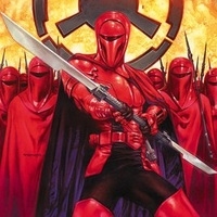 Read more about Kir Kanos at: Wikipedia Official Site: Lucasfilm Royal Guards are soldiers who protect Emperor Palpatine in the fictional Star Wars universe. They appear in Star Wars Episode VI: Return of the Jedi (1983) and in the third prequel film, Star Wars Episode III: Revenge of the Sith (2005). Royal Guards have been merchandised into action figures and miniatures, and their backstory expanded upon in such works as Dark Horse Comics' Crimson Empire series. Although Lucasfilm concept artist Nilo Rodis-Jamero created several designs for the Royal Guards, their crimson color remained consistent. Rodis-Jamero's designs ranged from "centurion-like warriors to priest-like monks". Jay Shuster based the Senate Guards' appearance in Star Wars Episode I: The Phantom Menace on the Royal Guards. Shuster humanized the Senate Guards by exposing their faces, and he gave them a plume for a classical appearance. Although originally intended to be predecessors to the Royal Guards, Star Wars Episode II: Attack of the Clones shows the two types of guards to be contemporaneous. No longer needing to suggest the Senate Guards' progression into Royal Guards, costume prop supervisor Ivo Coveney removed the Senate Guards' plume and added a visor to their helmet for Revenge of the Sith. When Palpatine becomes chancellor of the Galactic Republic, he phases out the Senate Guards in preference for his own Royal Guards. Royal Guards accompany Emperor Palpatine at all times. Guardsman Kir Kanos is the anti-hero in Dark Horse's Crimson Empire comics.