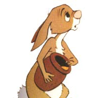 Read more about Rabbit at: Wikipedia Official Site: Disney Rabbit is a fictional yellow anthropomorphic rabbit character from the Disney Winnie-the-Pooh cartoons. In the fiction world of the book series and cartoon Winnie-the-Pooh, Rabbit happens to be a good friend of Winnie-the-Pooh. He is always practical and keeps his friends on their toes, although they sometimes raise his ire unintentionally. The first appearance of Rabbit is in chapter II in the Winnie-the-Pooh book by A. A. Milne. He also appears in chapters VII, VIII, IX and X of that book, as well as in chapters III, V, VI, VII, VIII, IX, and X in The House at Pooh Corner. Unlike most of the cast in the books, who are based on stuffed animals owned by Christopher Robin Milne, the illustrations of Rabbit look more like a living animal than a stuffed one. This idea is also supported by Rabbit's own comment to Owl, "You and I have brains. The others have fluff." In Ernest H. Shepard's illustrations, Rabbit appears like a typical, long-eared rabbit, except that he walks on two legs and uses his front paws as hands. The top of his head reaches about to Pooh's nose; his ears, when pointed straight up, reach to just above Pooh's head. While loyal to the friends he knows, Rabbit shows a certain reluctance to welcome newcomers, as evidenced by his initial negative reaction to the arrival of Kanga and Roo in the first book, and to Tigger in the second book. Nonetheless, he warms up to all of them in time. Rabbit likes to take charge and come up with elaborate plans, such as the one to scare Kanga by hiding Roo, and the one to "unbounce" Tigger. He is also an organizer, as in the case of the Search for Small. As detailed as his plans are, they often miss certain key points, and thus go wrong in one way or another.