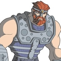 Read more about Fisto at: Wikipedia Official Site: Mattel The following is a list of the numerous characters within the Masters of the Universe animated series, film, toy lines, and spin-offs. (Real name: Adam of the House of Randor): He-Man is "the most powerful man in the universe" and the alter-ego of 16-year-old Prince Adam. He is armed with a power harness that enhances his strength, the Sword of Power, and a shield. Depending on his transformation to He-Man, at times he is also armed with plate armor, a battle ax, or deadly snake pinchers. In the 80s series, Prince Adam and He-Man are almost identically drawn, the difference being that Adam has lighter blond hair and paler skin, while He-Man has bronzed skin and more golden hair. In the 2002 series, Prince Adam resembles a teenager and is slender, with blond eyebrows and pants (versus 80s Adam's tights). He speaks with a higher tone of voice and often comes across as a clueless adolescent. He-Man, however, has black eyebrows, is much taller, and is far more muscular, as his transformation to He-Man later in the series (starting with "Council of Evil") shows. His voice is deeper, he is wise, and his age in indeterminate (mid 20s to mid 30s in appearance). Prince Adam and He-Man are voiced in the 80s series by John Erwin and by Cam Clarke in the 2002 series. In the 90s series, Prince Adam was voiced by Doug Parker while He-Man is voiced by Gary Chalk. In the 80s live-action movie, He-Man was portrayed by Dolph Lundgren. (Real name: Duncan): Man-At-Arms is Teela's adoptive father and is considered by Eternians to be the leader of the Masters of the Universe. Since Man-At-Arms is actually a title, not a name, the character is also known as Duncan. Man-At-Arms served as one of King Randor's chief supporters back during the Great Unrest, before the Council of Elders informed then-Captain Randor that his destiny was to be King of Eternia. Man-At-Arms designs and builds weapons and other technology for the royal family; he also help trains the Royal Guard, Teela, Prince Adam, and the other Masters of the Universe. Duncan knows Adam's secret identity and protects it by coming up with different excuses as to why Prince Adam has disappeared during the Masters' melees with evil. Man-At-Arms is also Adam's mentor and offers him guidance and counsel as Adam wrestles with his identity as He-Man. In the 2002 series, Man-At-Arms sports a short topknot, and the armor on his left arm transforms into a different built-in weapons and tools. This newer Man-At-Arms is also older, more grizzled, and has more of a military bearing than the original 80s version. The original Man-At-Arms action figure comes with a club but its owner extremely rarely had it in the cartoon. It is never explained in the cartoon or with the action figure why the figure never had the moustache seen on its animated counterparts. No match records for this character. Regular play Record: