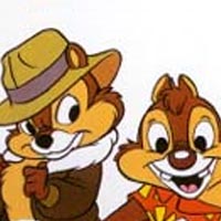 Read more about Chip and Dale at: Wikipedia Official Site: Disney Chip 'n Dale are two animated chipmunk created by The Walt Disney Company. Their names are a pun based on the name "Chippendale" (see Thomas Chippendale). This was suggested by Bill "Tex" Henson, a story artist at the studio. Originally the two had the same colored noses, but as a way to tell them apart, Chip was given a black nose and Dale was given a red nose. According to Disney, Chip is the logical schemer, and Dale is the goofy, dim-witted one. An easy way to visually tell them apart is that Chip has a small black nose (it looks a bit like a chocolate "Chip" as a way to help people remember who is who) and two centered protruding teeth, whereas Dale has a big red nose and his two prominent buck teeth exposed. Chip is also depicted as having smooth, short fur atop his head while Dale's tends to be ruffled. In the '50s, they were finally given their own series, but only three cartoons were made; Chicken In The Rough (1951), Two Chips And A Miss (1952) and The Lone Chipmunks (1954). Chip 'n Dale first appeared in the cartoon Private Pluto (1943), though they did not have their names or distinguishing characteristics. Pluto has been assigned to guard a pillbox where the two chipmunks are storing their nut supply, with the large gun being used as a nutcracker. However, various portions of Pluto's anatomy (such as his head) are realized as useful nutcracking implements. Eventually, they retreat into the pillbox, leaving Pluto weeping outside. No match records for this character. Regular play Record: