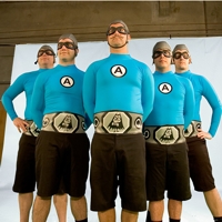 Read more about The Aquabats at: Wikipedia Official Site: The Aquabats The Aquabats are an American rock band formed in 1994 in Orange County, California. They have released five full-length studio albums and have toured internationally. They are best known for their mythology, in which they claim to be superhero on a quest to save the world from evil through music. As a part of this mythology the band members have adopted superhero pseudonym and dress in matching costumes. Their eclectic live show often includes onstage "battles" with costumed foes, and the band has built up an elaborate and ever-changing backstory of their origins and adventures, along with a roster of allies and enemies. The group's lineup has fluctuated significantly throughout their career, with founding members The MC Bat Commander and Crash McLarson as regular fixtures. Jimmy the Robot has also remained a longtime member, having joined the band in 1997. The Aquabats' early work was heavily rooted in the third wave of ska music, with touches of surf and punk rock. Over the years their music shifted towards more synthesizer-based rock with a new wave influence. Their current style blends elements of rock and roll, pop-punk, ska, and synthpop. As of 2012, The Aquabats star in their own television series, The Aquabats! Super Show!, airing on The Hub. The Aquabats originated in 1994 in Brea, California. Vocalist Christian Jacobs, bassist Chad Larson, and trumpet player Boyd Terry formed friendships while attending the same LDS church. The trio recruited more friends from church and began rehearsing together in the garage of a house that Jacobs and Larson shared. Inspired by the matching-outfit stage concept of Devo, the band purchased wetsuits at a surf-equipment store owned by Terry's brother to create costumes. The group played its first show at a party in August of 1994, but Larson recalled, "The first performance we did as a joke. We weren't trying to be a band. We were trying to have fun." After enlisting Jacobs' younger brother Parker, the group began conceptualizing its style, creating pseudonyms for each of the members. However, the band struggled to develop its sound, and disapproved of the violence associated with the punk rock scene. While attending a ska show in Orange County, Jacobs noted "No one was fighting or pushing each other but having a good time. It wasn't, 'Let's start a pit and maybe my boots will cause someone to bleed.' We started the Aquabats to be part of the fun." Their music was heavily rooted in surf rock, punk rock, pop, and ska, and influenced by groups such as Devo, Oingo Boingo, Madness, and The Skatalites. Shortly after forming, the band began to establish their mythos, taking the above-mentioned stage names and claiming that they were superheroes from an island called Aquabania. Trumpet player and original member, Boyd Terry worked for Aleeda making wetsuit, and using spare rashguard and pieces of neoprene fashioned matching costumes for the group. They recorded and released a demo known as Revenge of the Midget punchers and began to build a local following through their energetic and eclectic live performances. They also released another demo tape at a local concert in early 1995 called the "Bat Boy" cassette. No match records for this character. No match records for this character. |