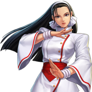 Read more about Chizuru Kagura at: Wikipedia Official Site: SNK Playmore The King of Fighters fighting game series, produced by SNK Playmore, includes a wide cast of characters, some of which are taken from other SNK games. The story takes place in a fictional universe in which an annual series of 3-on-3 or 4-on-4 fighting tournaments are held. The first game in the series introduces the initial main character of the series, Kyo Kusanagi, a young Japanese fighter who is the heir to a powerful group of martial artists having pyrokinetic abilities. Kyo fights against the Kusanagi clan's enemies, his rival Iori Yagami, and the demon and his human followers, among others. The first four games in the series revolve about these fights, while The King of Fighters '99 introduces a new story arc, revolving around K', a clone of Krizalid who wants to destroy the mysterious NESTS organization because they kidnapped him at an early age and stripped him of his past memories, so that they could force him to be a fighter under their control. In The King of Fighters 2003, a new character named enters the tournament, to steal the powers of the clans who sealed Orochi in the past for an unknown reason. A new group of antagonists, known as , also appears in the series; they want to obtain Orochi's power for the purpose of giving it to their unknown master. The plot and the characters came from the Yamata no Orochi legend. There are also several characters in the games that are parodies or homages to several popular anime, manga, and film. Merchandise based on the characters has also been released, including action figures and keychains. The characters have garnered praise from several video game publications for the quality of their designs and movesets. Comments focused on the lack of improvements in some of the characters, but added that the roster is greatly diversed. The developers of the series claim that their prototype version for King of Fighters was going to be a side-scrolling beat 'em up titled Survivor. It would have used only core characters from the Art of Fighting and Fatal Fury series, specifically allowing players to play Robert Garcia and Terry Bogard for location testing. However, the idea was quickly abandoned. Since the developers were attached to the idea of the two series cross-over, they eventually agreed to make their idea into a fighting game. Characters from the Ikari Warriors and Psycho Soldier games were also added in the spirit of other gaming genres considered for their final product. The concept of a three-man team was one of the ideas kept from the side-scrolling version.