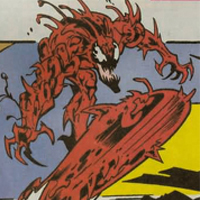 Read more about Carnage Cosmic at: Wikipedia Official Site: Marvel Carnage (Cletus Kasady) is a fiction character, a supervillain in the . The character first appears in The Amazing Spider-Man #344 (March 1991), and was created by writer David Michelinie and artist Mark Bagley. In 2009, Carnage was ranked as IGN's 90th Greatest Comic Book Villain of All Time. Writer David Michelinie created Carnage to be a darker version of Venom intending to have Venom's human alter ego, Eddie Brock, be killed off in Amazing Spider-Man #400 and have the symbiote continue to bond with a series of hosts. However, as Brock and Venom's popularity increased, Marvel would not allow him to be killed. Michelinie decided to create a new character; a total psychopath who unlike Venom had no sense of honor. The character was originally meant to be named "Chaos" and then "Ravage" before being settled on "Carnage." Carnage's human component, Cletus Kasady was designed by artist Erik Larsen who modeled the character after the DC Comics supervillain the Joker. Mark Bagley designed the Carnage symbiote. Cletus Kasady was introduced in Amazing Spider-Man #344 and first appears as Carnage in issue #360. He is the main villain in the 1993 "Maximum Carnage" crossover, a 14-part storyline crossover that spanned through all the Spider-Man titles. In 1996, two one-shot comics centered entirely around Carnage were released, entitled Carnage: Mind Bomb and Carnage: It's A Wonderful Life, both of which expand on his character. Cletus Kasady had a troubled childhood, killing his grandmother by pushing her down a flight of stairs, and torturing his mother's dog. His mother then tries to kill Cletus, and is apparently beaten to the brink of death by Kasady's father, who receives no defense from Kasady during his trial. As an orphan, Kasady is sent to the St. Estes Home for Boys, where his antisocial behavior makes him the target of abuse from both the other orphans and the staff. Kasady gains revenge by murdering the disciplinarian administrator, pushing a girl who refused a date with him in front of a moving bus, and burning down the orphanage. No match records for this character. Regular play Record: