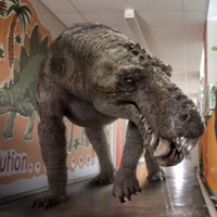 Read more about Gorgonopsid at: Wikipedia Official Site: ITV The following is a complete list of creatures from the universe of ITV science fiction television series Primeval and also any spin-off merchandise. The series includes various imaginary species which are not native to the series setting, with some being prehistoric and others being futuristic. Various creatures were designed with some artistic license, for dramatic effect. A number of creatures from the Walking with... series were also reimagined for dramatic effect. In 2007 Character Options announced they would create Primeval action figures, including both a flying and a large plush toy Rex, , and ). In Extinction Event, the first large dinosaurs the kidnapped team spot are Anatotitan, which are described as large hadrosaur that move in large herds, stampeding whenever they are threatened by a predator such as the Tyrannosaurus. They were said to be a yellow-brown color with dark brown camouflage stripes down their back, similar to the Iguanodon in The Lost Island. In Extinction Event, Ankylosaur are seen a couple of times, at first one plods harmlessly through the team's campsite, and prove to be resistant to gunfire, and later Jenny and the soldiers accomponying her are almost killed after an angered Ankylosaurus hits the car they are in with its tail club. A mother and baby are also seen in the Cretaceous. No match records for this character. No match records for this character. |