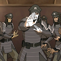 Read more about Metalbending Police Force at: Wikipedia Official Site: Nickelodeon The Legend of Korra is an American animated television series that premiered on the Nickelodeon television network on April 14, 2012. It was created by Michael Dante DiMartino and Bryan Konietzko as a sequel to their previous show, Avatar: The Last Airbender, which aired on the same network from 2005 to 2008. Like its predecessor, the series is set in a fictional world where some people are able to "bend"—manipulate the elements of water, earth, fire, or air. Only one person, the "Avatar," can manipulate all four elements, and he or she is responsible for maintaining the balance in the world. The series follows Korra, the current incarnation of the Avatar, as she travels to the metropolis of Republic City to learn airbending and face an anti-bender revolutionary group called the "Equalists." The series, whose style is strongly influenced by Japanese animation, It was initially conceived as a miniseries of 12 episodes, The creators separated each season into two "books," each of which tells a separate story. Several producers and voice actors from the previous series, including designer Joaquim Dos Santos and composer Jeremy Zuckerman, returned to work on The Legend of Korra. The Legend of Korra was initially conceived as a 12-episode miniseries. Nickelodeon later expanded it to a full 26-episode season, and in July 2012 again to two 26-episode seasons. While Nickelodeon divides the series in two seasons for administrative purposes, the creators conceive of it as consisting of four separate "books" composed of 12 to 14 episodes ("chapters"), with each book telling a stand-alone story. The Legend of Korra is intended to conclude with the fourth book. The Legend of Korra is set in the fictional world of Avatar: The Last Airbender. The world is separated into four nations: the (Northern and Southern) Water Tribes, the Air Nomads, the Earth Kingdom and the Fire Nation. The focus of the series is "bending," the ability of some humans (and animals) to telekinetically manipulate the element associated with their nation (water, earth, fire or air). Bending is carried out using spiritual and physical exercises, which are portrayed in the series as similar to Chinese and other Asian martial arts. No match records for this character. No match records for this character. |