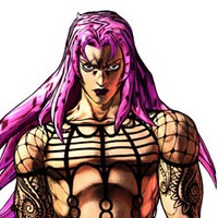 Read more about Diavolo at: Wikipedia Official Site: JoJo , initially referred to as , is the fifth story arc of the Japanese manga series JoJo's Bizarre Adventure, written and illustrated by Hirohiko Araki. Since the arc takes place in Italy, the series title is written in Italian as Le Bizzarre Avventure di GioGio. It was serialized in Weekly Shōnen Jump from 1995 to 1999. As it is the fifth part of the series, the 154 chapters pick up where the fourth left off and are numbered 441 to 594, with the tankōbon volumes numbered 47 to 63. It was preceded by Diamond Is Not Crash and followed by Stone Ocean. In 2001 Koichi Hirose, from Part 4, goes to Naples at the request of Jotaro Kujo to find someone and get a skin sample of theirs. This person turns out to be middle school student Giorno Giovana (in Italian "Gio" is pronounced very similar to "Jo"), the son of Dio Brando (conceived using Jonathan Joestar's body) and a Japanese woman. The story then follows Giorno as he tries to become a boss of the mafia in order to make Naples a better place and help its people. So he joins Passione, an organized crime group that employs many Stand users (essentially, his vision for Passione is akin to Robin Hood's band, in contrast to the sheer powerlust of its current leader). He is placed in the group of Bucciarati, who is at first suspicious of Giorno but is eventually won over and decides to work with him to take over the mob from within, and put an end to the Passione drug trade. Bucciarati is also the superior of fellow Stand users Guido Mista, Leone Abbacchio, Narancia Ghirga, and Fugo Pannacotta. Throughout the span of the story, the group - suspicious of Giorno - soon discover his courage and generosity, and slowly warm to him. After finding Polpo's amassed fortune on the island of Capri, Bucciarati is promoted and his group is assigned a secret mission by the boss himself—escort his teenage daughter, Trish Una, safely to him. With the help of a Stand-using turtle, they fend off various attacks by Stand-using traitors within the mob, determined to overthrow the boss—only by kidnapping Trish can they hope to learn his identity. After traveling to Pompeii and Florence, they arrive in Venice to meet the boss at the Church of San Giorgio Maggiore on San Giorgio Maggiore island. However, while doing so Bucciarati discovers that the boss only wanted Trish brought to him so he could kill her himself—his intent was nothing more than to permanently conceal his identity. He alone tries to kill the Boss, in order for him and Giorno to achieve their goal, but realizes his Stand that can erase time and subsequently predict events is too powerful and decides to retreat. Bucciarati's group, minus Fugo, then join him in betraying the Boss and protect Trish so they can learn his identity. Even after Trish discovers her own Stand ability, they find themselves in the unenviable position of opposing all of the Passione gang in order to protect her. No match records for this character. No match records for this character. |