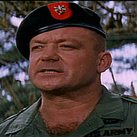 Read more about MSG Muldoon at: Wikipedia Official Site: Warner Bros The Green Berets is a 1968 American war film featuring John Wayne, George Takei, David Janssen, Jim Hutton and Aldo Ray, nominally based on the eponymous 1965 book by Robin Moore, though the screenplay has little relation to the book. Thematically, The Green Berets is strongly anti-communist and pro-Saigon. It was produced in 1968, at the height of American involvement in the Vietnam War, the same year as the Tet offensive against the largest cities in South Vietnam. John Wayne was prompted by the anti-war atmosphere and social discontent in the U.S. to make this film in countering that. He requested and obtained full military co-operation and matériel from President Johnson. To please the Pentagon who were attempting to prosecute Robin Moore for revealing classified information, Wayne bought Moore out for $35,000 and 5 percent of undefined profits of the film. At Fort Bragg, cynical newspaper reporter George Beckworth (David Janssen) is at a Special Forces briefing about the American military involvement in the war in Vietnam. The briefing (at Gabriel Demonstration Area, named for SGT Jimmy Gabriel, first SF soldier killed in Vietnam) includes a demonstration and explanation of the whys and wherefores of participating in that Asian war. The film's first scene illustrates that contention when Green Beret tour guides at Fort Bragg, North Carolina, show civilian visitors to the U.S. Infantry School the Soviet- and Chinese-made weapons issued to the soldiers and guerillas of the communist NVA and VC. No match records for this character. No match records for this character. |