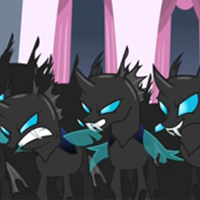 Read more about Changelings at: Wikipedia Official Site: Hasbro My Little Pony: Friendship Is Magic is an animated television series produced by Hasbro Studios in the United States (for scripts) and at DHX Media's studio located in Vancouver (for animation; formerly known as Studio B Productions), which is based on Hasbro, Inc's My Little Pony line of toys and animated works. The series is considered to be the fourth generation (G4) of the My Little Pony franchise, following earlier lines and television show tie-ins in the 1980s and 1990s. The series premiered on October 10, 2010, on The Hub, an American pay television channel partly owned by Hasbro. , the show has completed its third season with a fourth season set to air in early 2014, and is broadcasting internationally in dozens of countries in more than twenty languages. A feature film, My Little Pony: Equestria Girls, was released in 2013. In addition to toys and home media releases, Hasbro has licensed clothing, comic books, and video games based on Friendship Is Magic. Hasbro selected animator Lauren Faust as the creative director and executive producer for the show. Faust sought to challenge the established nature of the existing My Little Pony line, creating more in-depth characters and adventurous settings, incorporating Hasbro's suggestions for E/I ("educational and informational") content and marketing of the toy line. Faust left the show during the production of the second season, and she is credited as consulting producer. Jayson Thiessen, the show's supervising director, became the showrunner starting with season two. The show follows a studious unicorn pony named Twilight Sparkle as her mentor Princess Celestia guides her to learn about friendship in the town of Ponyville. Twilight becomes close friends with five other ponies: Applejack, Rarity, Fluttershy, Rainbow Dash, and Pinkie Pie. Each represents a different face of friendship, and Twilight discovers herself to be a key part of the magical artifacts, the "Elements of Harmony". The ponies share adventures and help out other residents of Ponyville, while working out the troublesome moments in their own friendships. The show has been critically praised for its humor and moral outlook. Despite the target demographic of young girls, Friendship Is Magic has, in addition, gained a large following of older viewers, predominately teenagers and adults, largely male, who call themselves "bronies". Reasons for this unintended appreciation include Faust and her team's creative writing and characterization, the expressive Flash-based animation style, themes that older audiences can appreciate, and a reciprocal relationship between Hasbro, the creators, and the fans. Elements of the show have become part of the remix culture and have formed the basis for a variety of Internet memes. As a result in part of this unexpected cross-demographic audience interest, the series has become a major commercial success, becoming the most highly rated original production in the Hub's broadcast history. No match records for this character. Regular play Record: