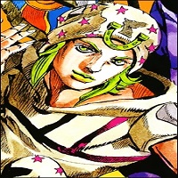 Read more about Johnny Joestar at: Wikipedia Official Site: JoJo , birth name , is a fictional character from the Japan manga JoJo's Bizarre Adventure. In Steel Ball Run's alternate universe version of the world, he takes the place of Jonathan Joestar. He is a paraplegic, and is usually seen wearing a hat with a horse shoe decoration on the front. He is the main character of this series alongside Gyro Zeppeli. Johnny Joestar, born Jonathan Joestar and also known as "Joe Kid" or "JoJo", was a racing prodigy. However, when waiting in line for a play, the girl he was with convinced him to cut to the front of the line and bribe the bouncers to throw out the youth in the front of the line, who had been waiting through the night. The youth shot Johnny, resulting in his being paralyzed from the waist down and sent to a hospital, where he was physically abused. Having lost all the friends and respect he had earned as a jockey, no one visited him during his stay in the hospital. Near the beginning of the series Steel Ball Run, Johnny Joestar encountered Gyro Zeppeli and was brought to his feet upon touching Gyro's steel ball. Believing Gyro to be capable of teaching him to walk, Johnny joined the Steel Ball Race and followed him to be trained. Johnny earns a Stand named 'Tusk' when they venture into the Devil's Palm as a result of their fight with Dio and Dr. Ferdinand. Tusk is able to fire Johnny's spinning fingernails similar to a revolver, with the nails having to take a few seconds to regrow. This long range attack becomes his primary means of defense. His Stand is small in size and has the same star-pattern over it as on Johnny's clothing; it appears to reside inside of him and only comes out to offer advice. It cannot speak, only make animal-like noises.