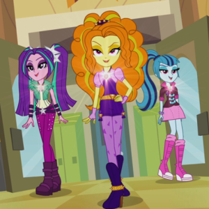 Read more about The Dazzlings at: Wikipedia Official Site: Hasbro My Little Pony: Equestria Girls – Rainbow Rocks, or simply known as Rainbow Rocks, is a 2014 Canadian–American Flash animated fantasy musical film based on Hasbro's Equestria Girls toy line and media franchise, which is a spin-off of the 2010 relaunch of My Little Pony. Written by Meghan McCarthy and directed by Jayson Thiessen and Ishi Rudell, the film was produced by DHX Media's 2D animation studio in Vancouver, Canada for Hasbro Studios in the United States, as a sequel to the original Equestria Girls (2013). The film premiered in select theaters across the United States and Canada on September 27, 2014, which was followed by broadcast on Discovery Family, a joint venture between Discovery, Inc. and Hasbro, on October 17, 2014, and then a home media release on October 28, 2014. Like the first film, Rainbow Rocks re-envisions the main characters of parent franchise, normally ponies, as teenage human characters in a high school setting. Set between the television series' fourth and fifth seasons, the film's plot involves Twilight Sparkle returning to Canterlot High School to compete in a Battle of the Bands alongside the human counterparts of her friends – including former school bully/former student of Princess Celestia, Sunset Shimmer – to save the school from a trio of sirens from Equestria. The film was well received by critics, who described it as "far superior" to the first installment. It was followed by two sequels, Friendship Games and Legend of Everfree. Former Canterlot High School bully and student of Princess Celestia, Sunset Shimmer, who has reformed after being defeated by the magic of Princess Twilight Sparkle's crown, is ostracized by most of the school despite her efforts to atone. Her only friends are the counterparts of Rainbow Dash, Applejack, Pinkie Pie, Fluttershy and Rarity, who have formed a rock band called "the Rainbooms" to participate in the school's upcoming musical showcase. The five girls discover that the magic left over from Twilight's crown has given them the ability to grow pony-like ears, tails, and wings when they play their instruments. No match records for this character. No match records for this character. |