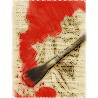 Next, the elder brought the horsehair brush to his face and begin chanting under his breath. His ghostly eyes rolled into the back of his head, and his hands began to tremble. Yet, there was a strange sense of dictation to these otherwise sporadic movements. As the chanting continued, the brush began to bend slightly in his hands, and then it dripped. With each drop, the brush gradually liquefied, until the chieftain was allowing a thick maroon and gold liquid slip through his fingers and fall to the altar. The aspiration lifted an old bony hand above the liquid and with a shout; he brought his hand down onto the concoction, splattering it all over.
