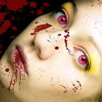 Suddenly, violently, you jerk forward. It feels like your stomach is being torn out through your throat as you vomit onto the floor. You're drunk again, as if the effects of the alcohol had somehow been locked away until now. The room spins around you as you attempt to regain your footing. Your vision blurs again, and you stumble forward. You extend your hand, and find solid matter. You are repulsed. The body before you is no longer smooth, the feeling of silk clearly an illusion given way for a ridged, bumpy hide. She takes your hand in hers, and pulls it toward her. You release a sharp, splitting scream as you feel the pressure of sharp, crushing teeth on your fingers. You drop to your knees once more, as you feel the heat of your own blood dribbling down your arm. You sob uncontrollably. The realisation begins to settle in.
