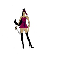 Dagger carries her signature dagger-the handle is embedded with ebony stone and the blade is a remarkably strong alloy. Her long dagger is easily mistaken for a sword, but that is elsewhere. She sports high heeled boots in which the heels and front are knife sharp. Her long black hair is half- up half down. Up in a bun which is secured with "hair chopstick" used to pick locks. Her straight hair is sometimes used as a whip on her foes